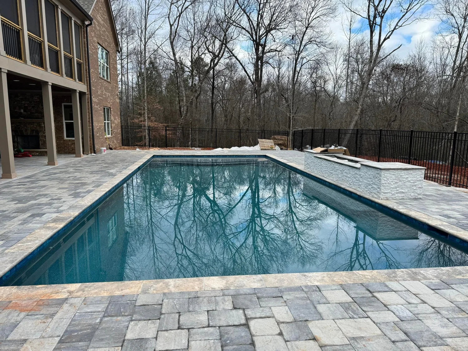 A comprehensive pool remodel in Lawrenceville that transformed an older pool with modern materials and equipment upgrades.